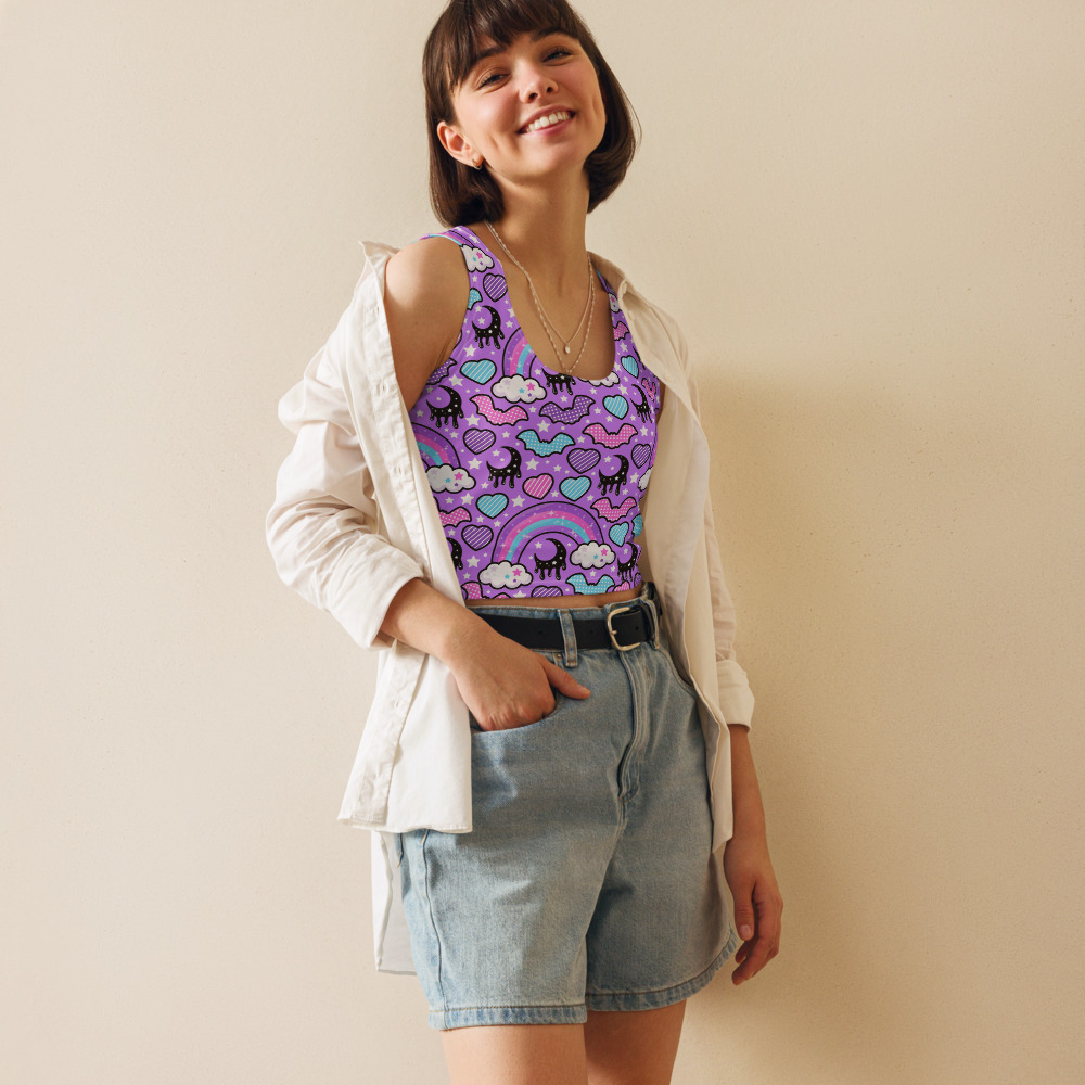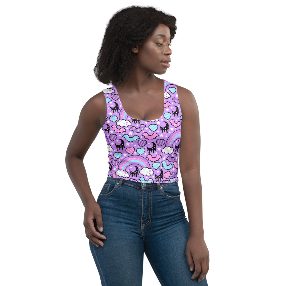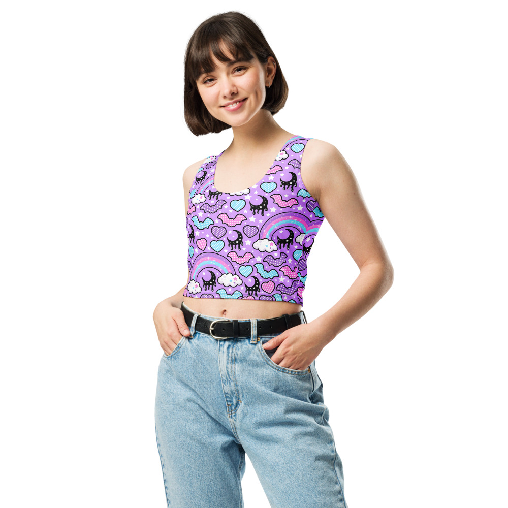 Rainbow Spooky Bats Purple Crop Top
