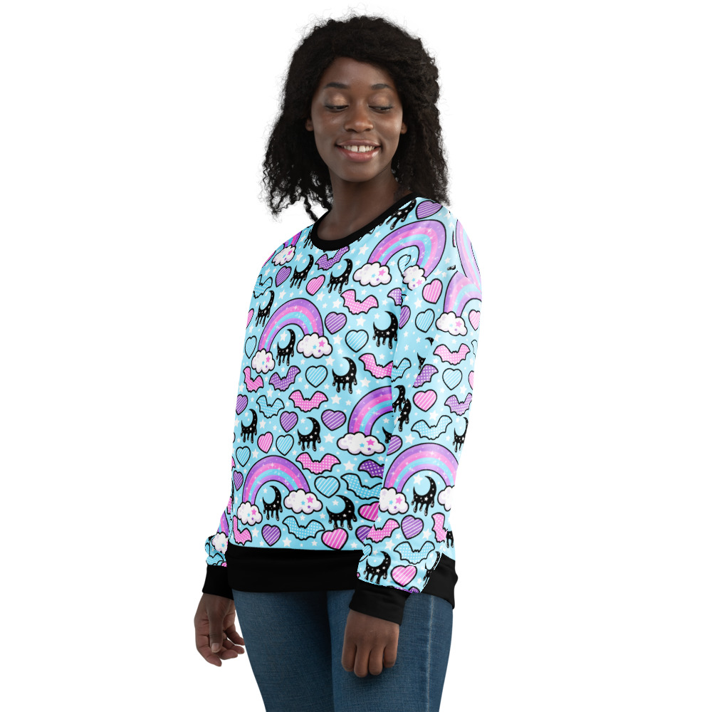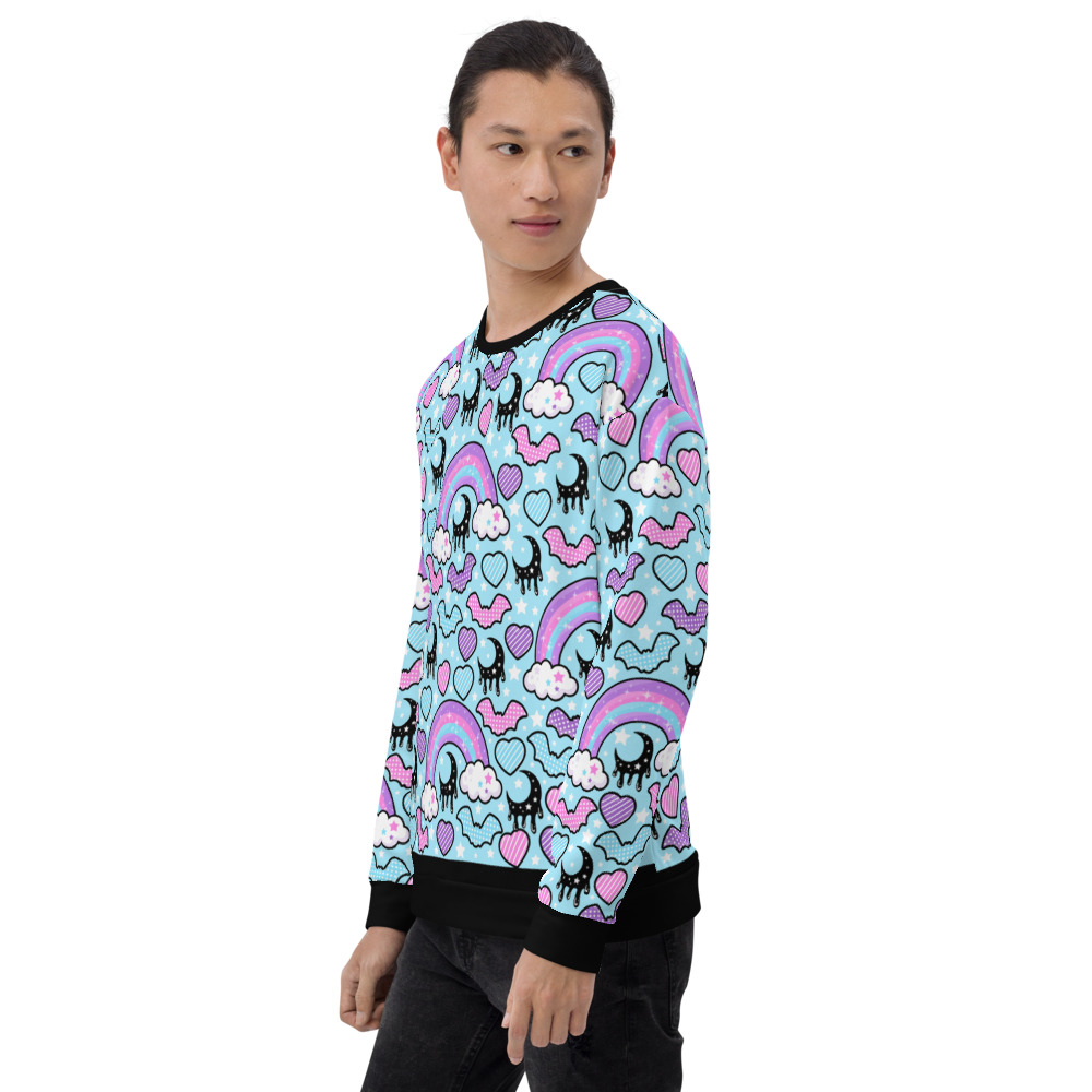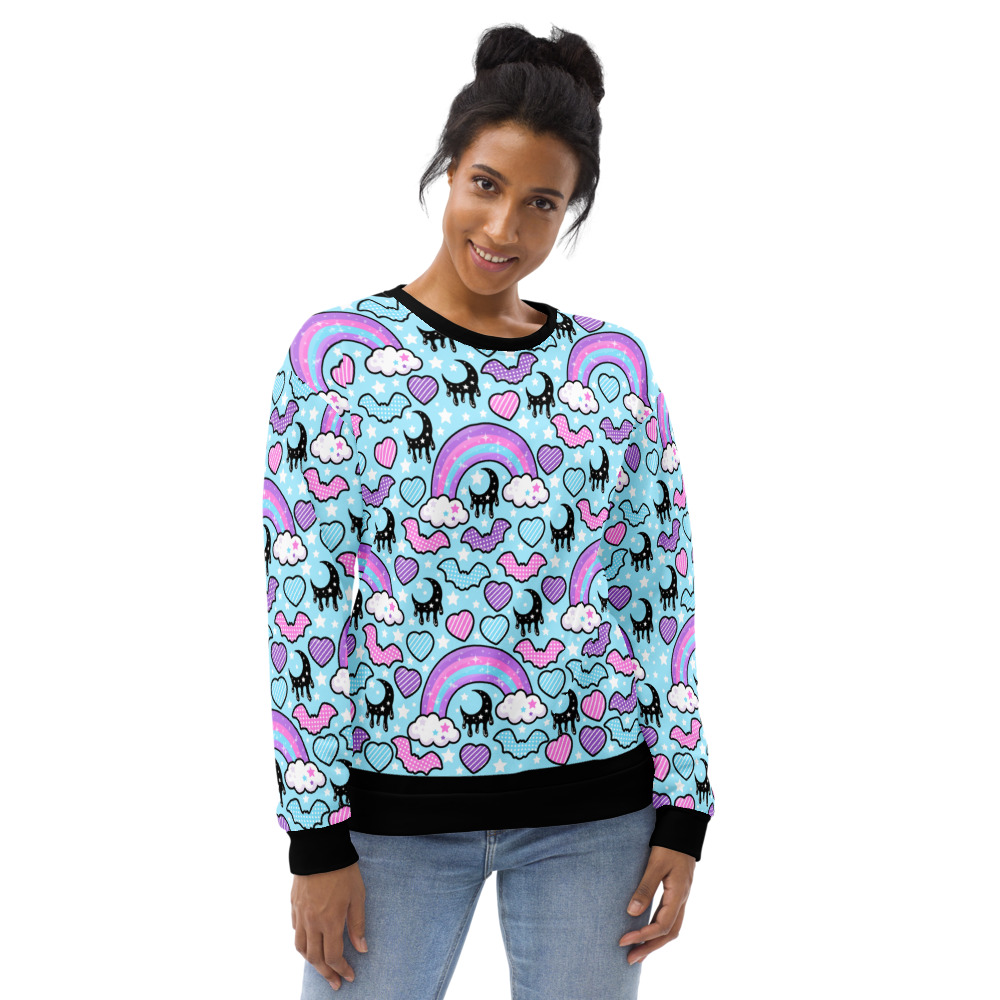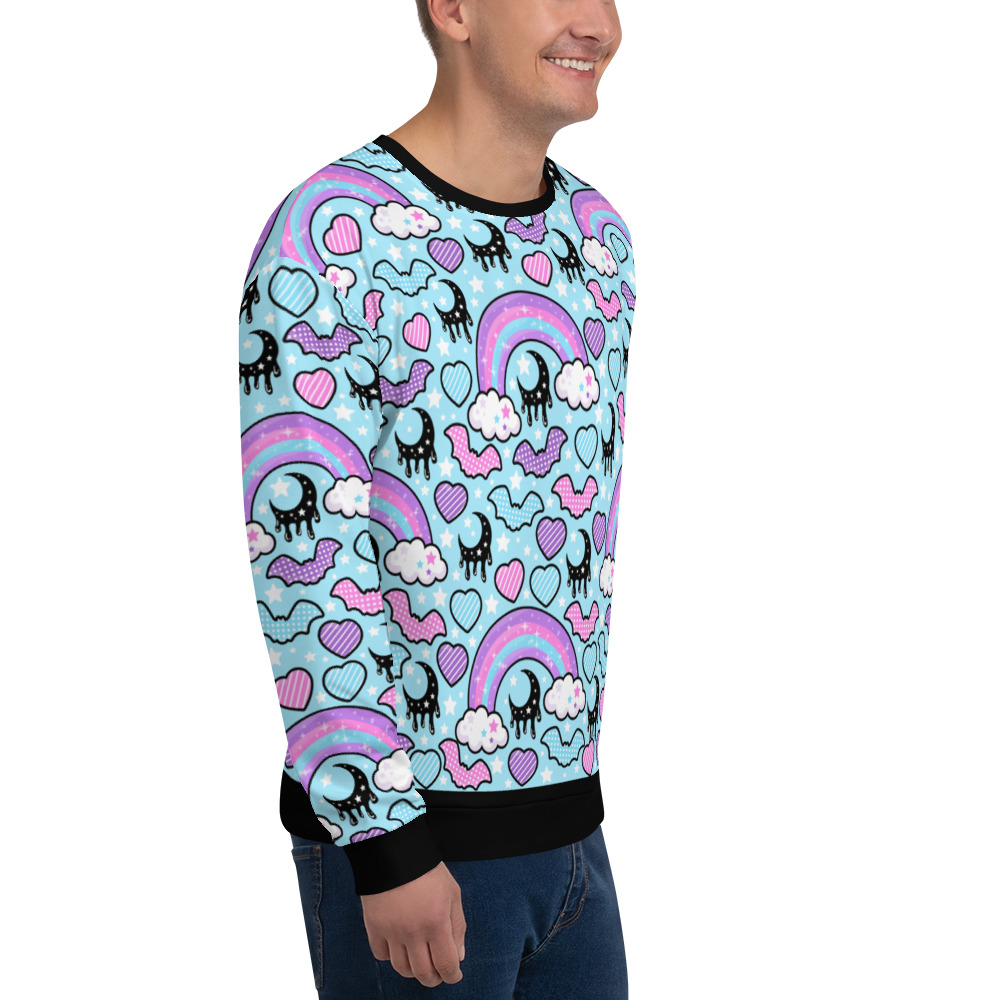 Rainbow Spooky Bats Blue Unisex Sweatshirt