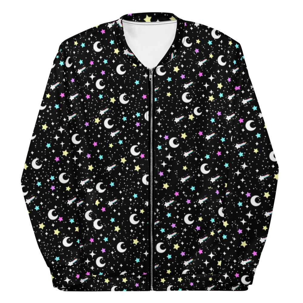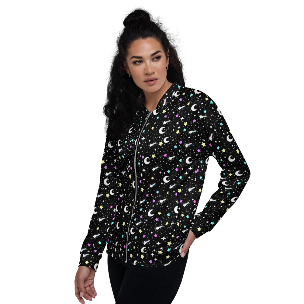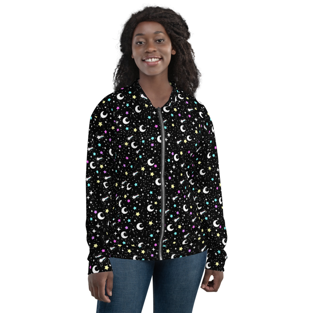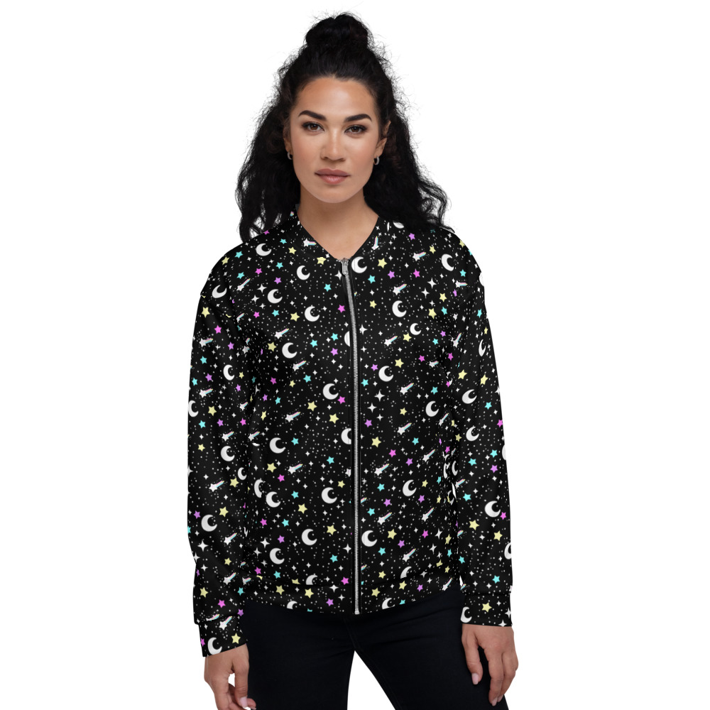 Add a little zing to your wardrobe with this vibrant All-Over Print Bomber Jacket. Wear it on a basic t-shirt, or layer it on top of a warm hoodieitll look great either way. With a brushed fleece inside, and a relaxed unisex fit, this Bomber Jacket is just the stuff of the dreams, so be quick to grab yourself one!