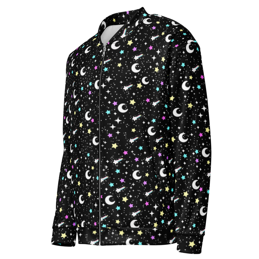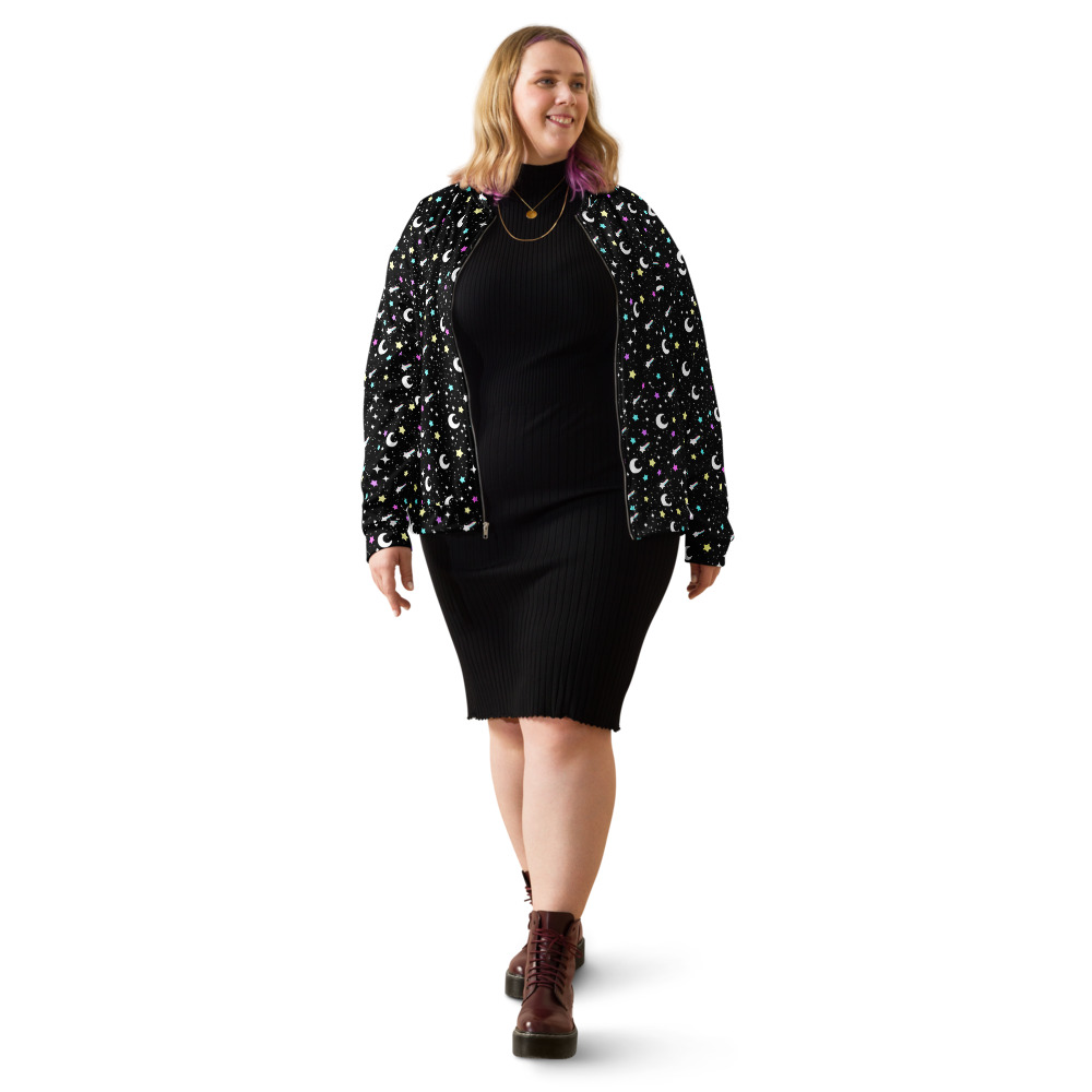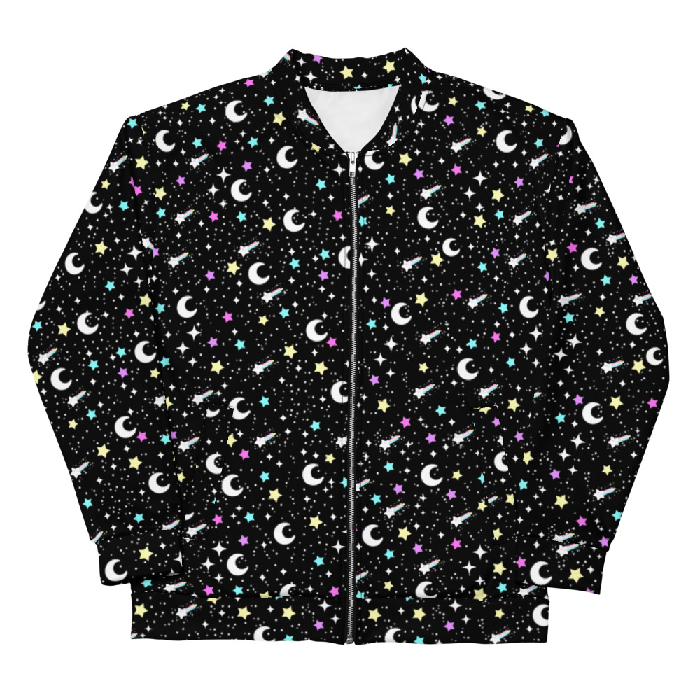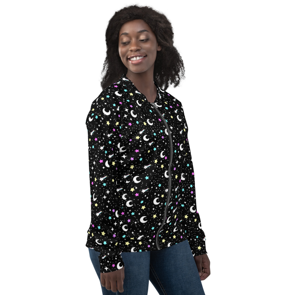 Add a little zing to your wardrobe with this vibrant All-Over Print Bomber Jacket. Wear it on a basic t-shirt, or layer it on top of a warm hoodieitll look great either way. With a brushed fleece inside, and a relaxed unisex fit, this Bomber Jacket is just the stuff of the dreams, so be quick to grab yourself one!
