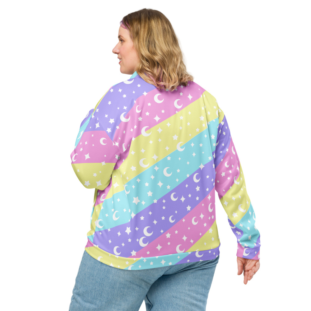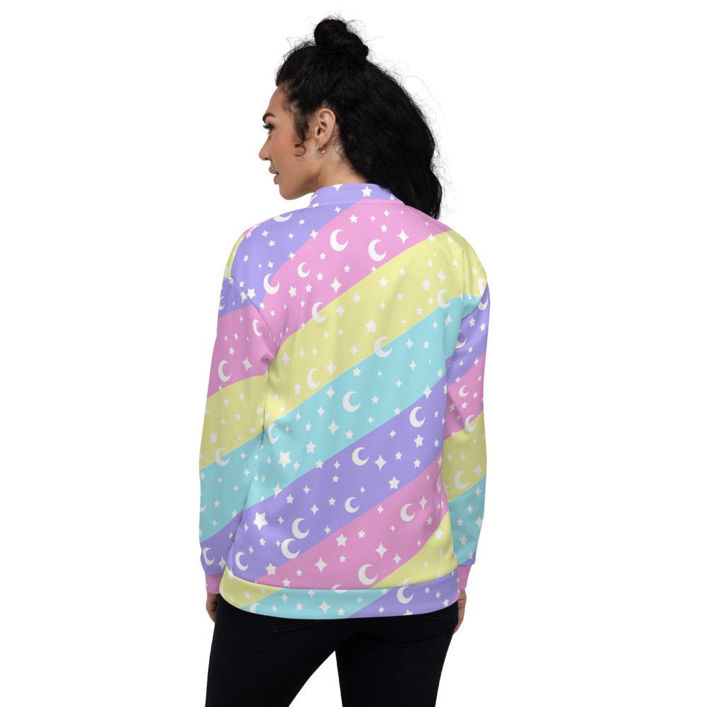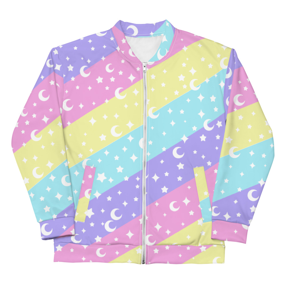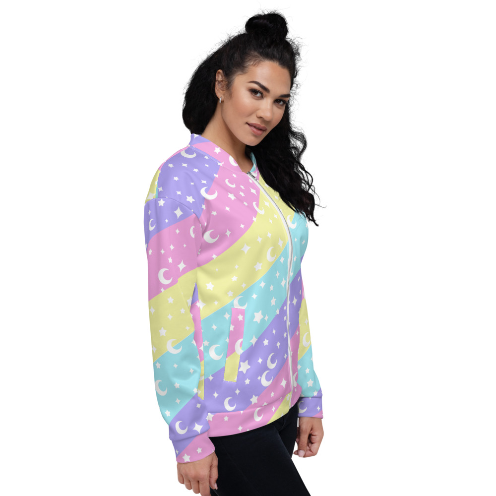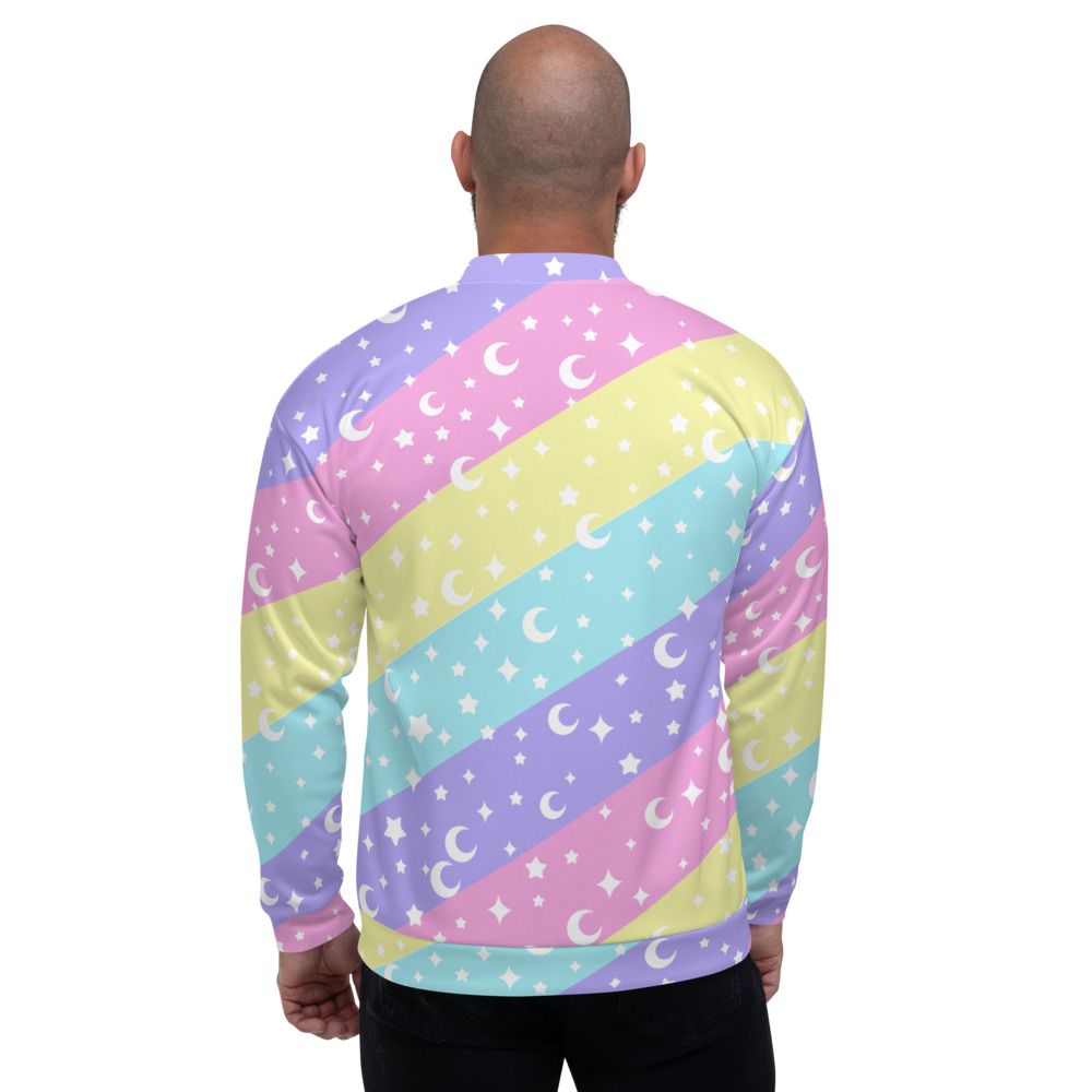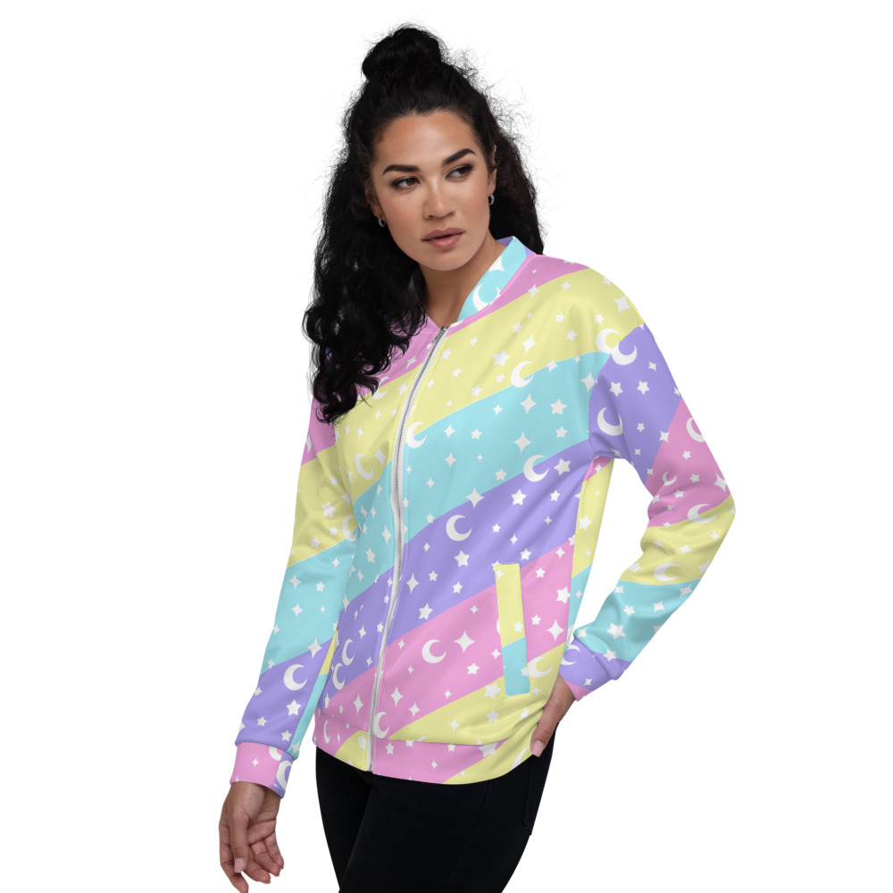 Add a little zing to your wardrobe with this vibrant All-Over Print Bomber Jacket. Wear it on a basic t-shirt, or layer it on top of a warm hoodieitll look great either way. With a brushed fleece inside, and a relaxed unisex fit, this Bomber Jacket is just the stuff of the dreams, so be quick to grab yourself one!