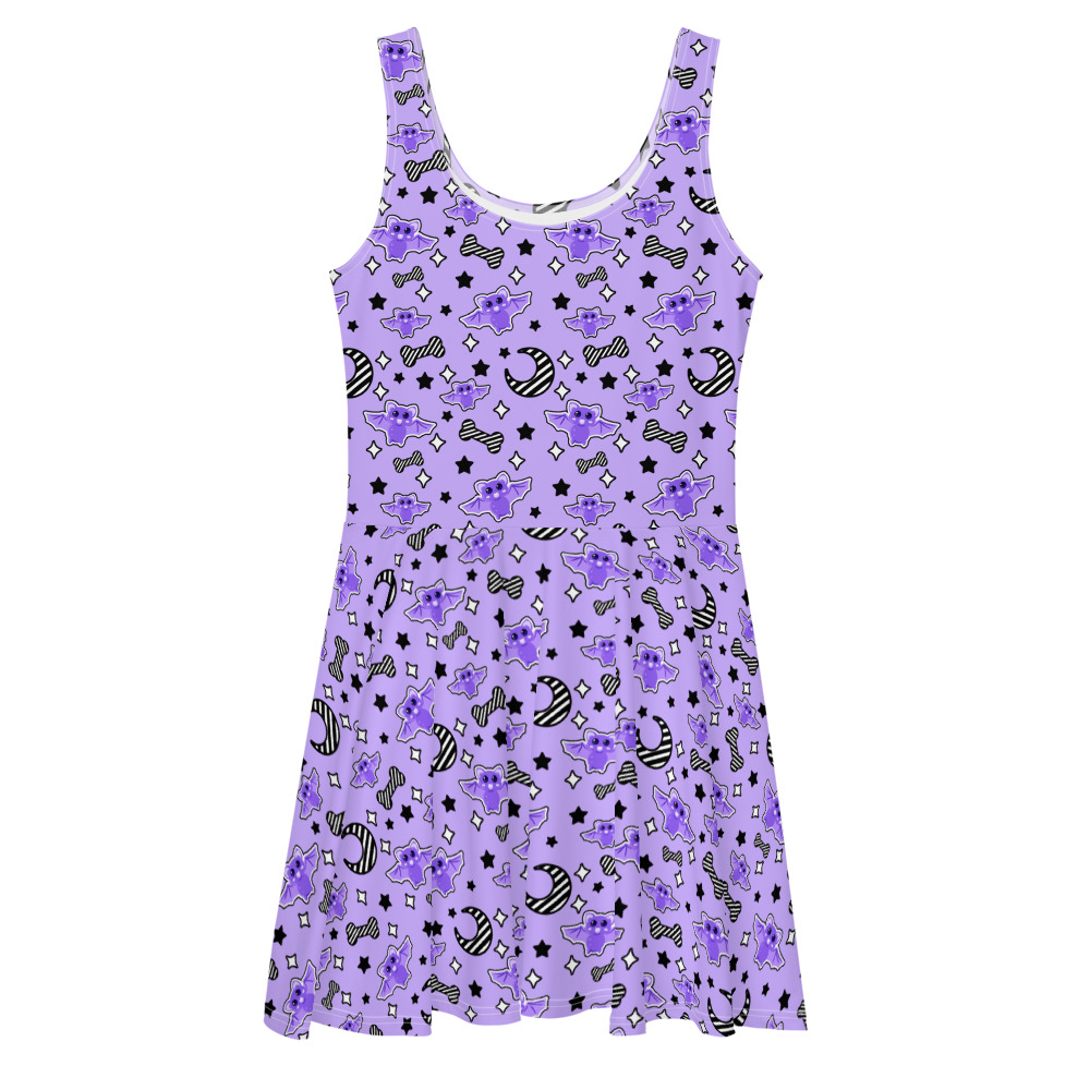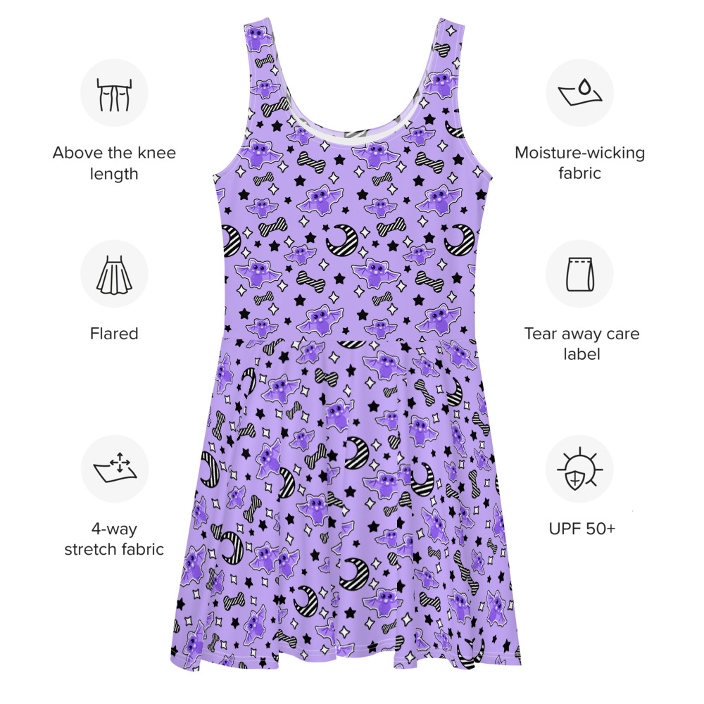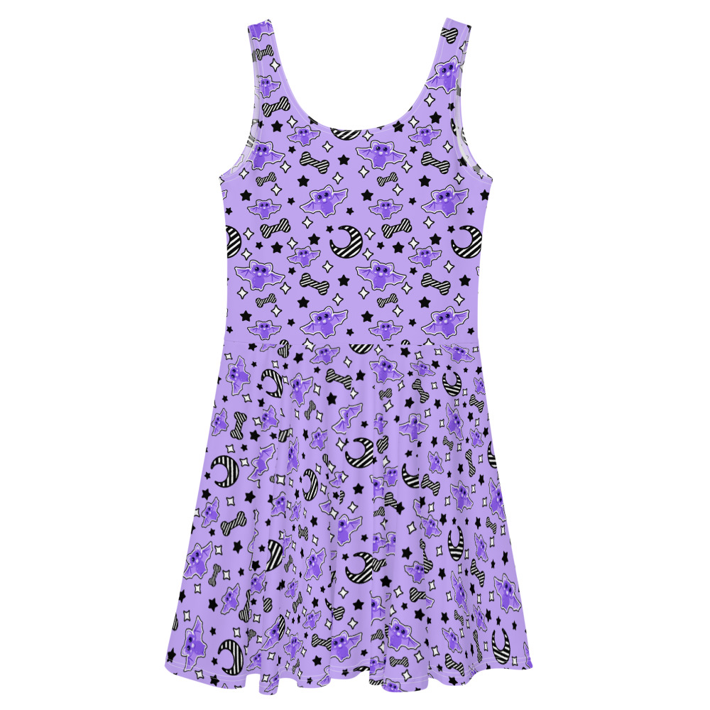 Magical Kawaii Spooky Bats Purple Skater Dress